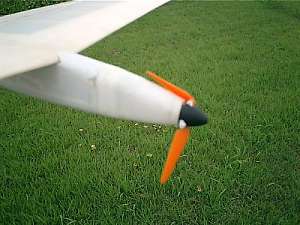 | ペラはGWSのリジットペラをオリペラに改造してアルミハブに取り付けております。 時々竹とんぼになります。 |