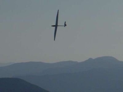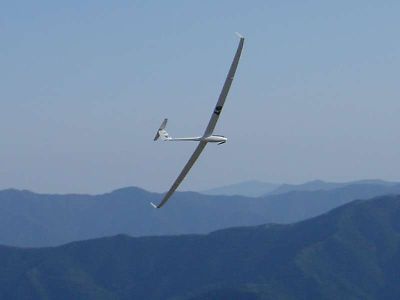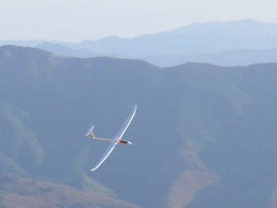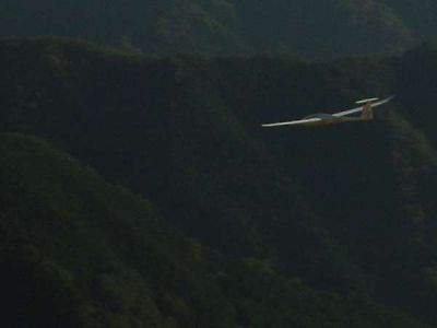 | 快晴の今日、四国カルスト五段高原でNimbus4(2.6m)を飛ばしてきました。 Nimbus4に積んでいたハイパワー仕様の動力ユニット+ニッカド(計444g)を外しS400ギャード+リポ仕様に載せ換え、200gの軽量化実施した結果、ループ、ロールが出来るようになりました。 このNimbus4は重心を合わせるためには、メカ入れて200g程度の物をノーズに積む必要がありますので、このユニットはピッタリでした。 ただ、スロープソアリングではカーボンカンザではいつ折れるか心配ですので、スチールに変更が必要です。 このNimbus4は、ついにアルパモデルから発売されましたが??,800円で良い値がついています。 今日のスロープは最近にない良い条件で、Nimbus4も満足のいく浮きと走りで、平地で電動で上げてサーマルを狙っていた時は、失速もあり舵が鈍くて少し操縦に難がありましたが、重心を下げて、エレベータトリムアップを無くして、走らせると充分エルロンとエレベータ楽に旋回が出来ます。 エレベータの舵角が大きいと、低速バンク旋回で失速に入りやすく抜けにくい特性が見られました。 |