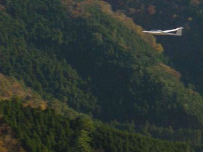 | ここからは、本来のスロープソアリング。 川田氏に撮影の為、低く低く、飛ばしてもらいました。 |