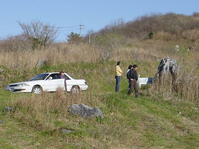 | 今日も、こんな感じでギャラリーの方々が車を停めて見学していました。 |