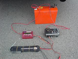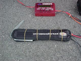 | フライト終わって、満充電にと・・・・お〜っと、1700mAhしか入りませんでした。 と言う事は、リチウムセーバーを付けて過放電を防止した一回の充電で1日遊べるかも。 でも、この気温ですから一回目のクライムはパンチがあるのですが、数分間の滞空後、2回目以降の冷え切ったリポの、まぁ元気の無い事! 余談その1:クイックのSambaのバッテリーをPoly-Quest 3100mAh SLIM 11.1Vに変更しました。 すると離陸後、即垂直上昇に入れ、ロールしながらそのまま上空へ上がるまでになりました。 まだまだ発展途上のリポですが、恐るべしリチウムポリマー!(モータ:AXI 2814/10 ペラ:APC 9*6E 10,500rpm/39A) 余談その2:このタイヤウォーマーを缶コーヒーやお茶に巻いて、12V流しておくとホッカホッカ状態に保てます。 |