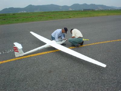 | 高知、石川さんのDG303Acro(Bruno)の初飛行です。 良く走り、浮きも相当良く、アクロもしたい!ソアリングもしたい人には うってつけです。 |