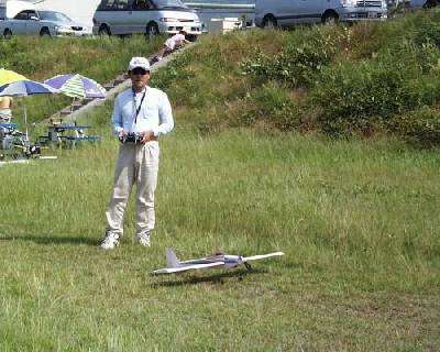 | 電動機でパターンをやっていただきました。 真部さん、火がつきましたか? よ〜し!私も飛ばすぞ!当面はリアルフライトですが・・・。 |