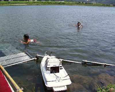 | 坂東さんちのお子さんです。 水はけっして暖かくないのですが、元気です・・・お父さんも・・・。 |