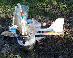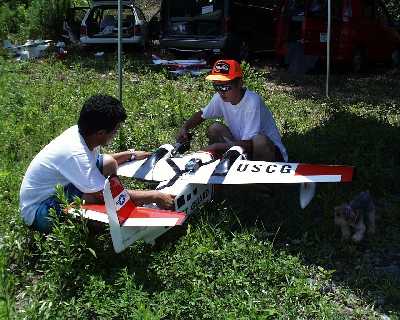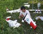 | 鷲尾さんの双発機です。 胴はFRP、翼は発泡バルサプランクで相当ボリュームがある機体です。 |