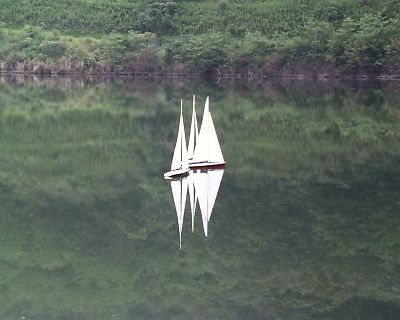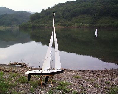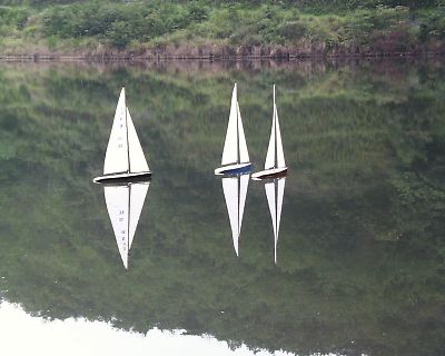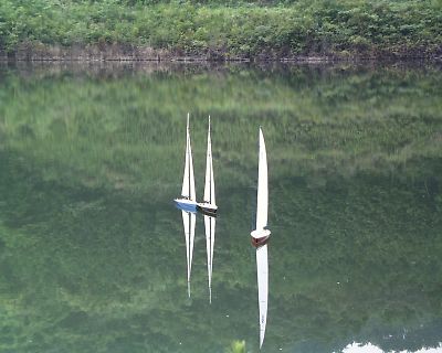 | 佐古ダムのヨットチームで。 きれいな湖面です、3艇ともCR914です。 |