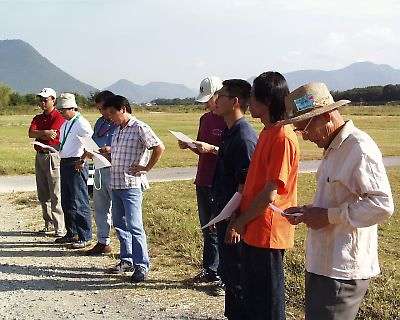 | 計測に先立ち、ゲージの説明を受けています。 |