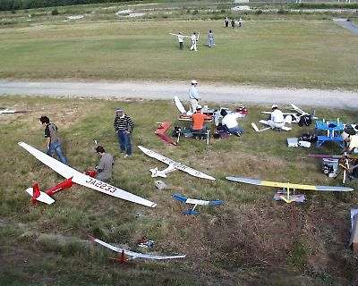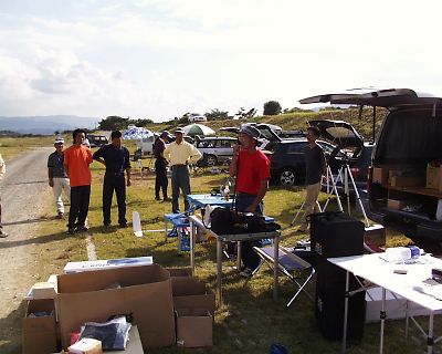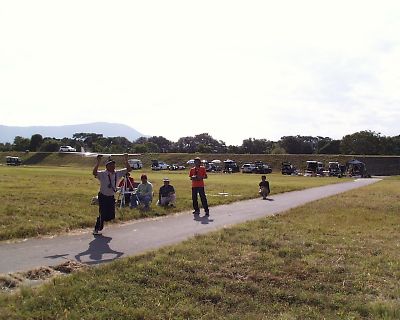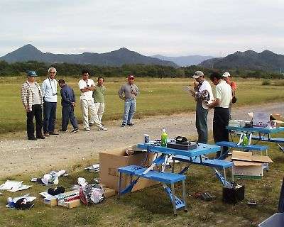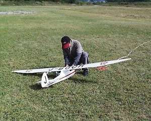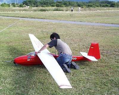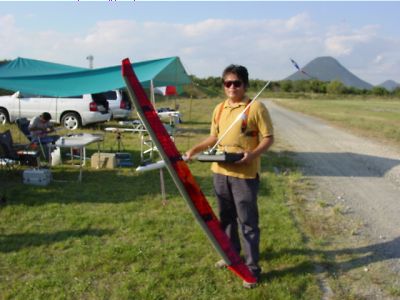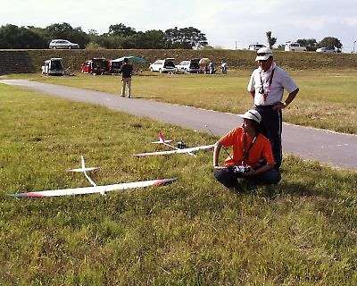 | 唯一、私が参加した証の写真です、黒松さん写真ありがとう。 記録会後、翌日サーマル大会用の機体調整&練習です。 出たのは結局Nimbus4でしたが・・・・。 |