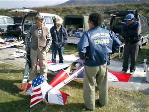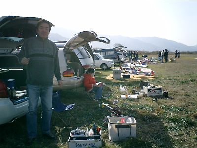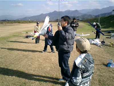 | 1/4の10時より、今治RCクラブ(周桑郡小松町)での初飛行会です。 もう時間的には昼食も終わり、一段落ついたところです。 |