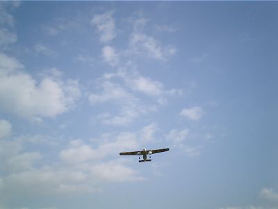 | 3モータ仕様のせいか、予想以上に推力が有り、クラークYの翼ではかなりエレベータダウントリムが必要でした。 |