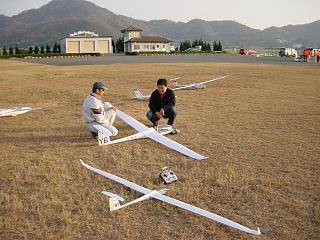 | 四万十水上機フェスティバルでお会いした高知の 石川さん、実機さながらの音と飛行、ありがとうご ざいました。 森さん、初飛行おめでとうございました。 松山のお二人はここから目が点!? 買ったら、行きましょう! 炊飯器も良いじゃないですか!買っちゃえば。 もう、しばらくはグライダー買わなくて良いでしょう! |