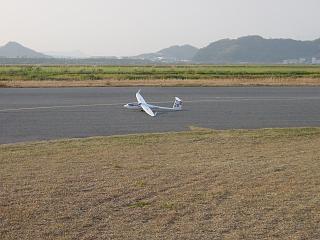 私は曳航係りを仰せつかって引っ張ってました。 グライダーらしき写真はこの6枚しかありません。 降ろすにも距離感は滅茶苦茶だし、どこからアプローチ しても良いし、どこに降ろしても良いし、良いですね。 トータルで一気に十数回上げて楽しまさせて頂きました。 |
