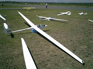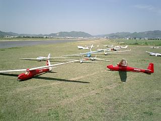 今日(4/27)は2回目の笠岡ふれあい空港です。 愛媛(松山・今治)からは5人参加参加いたしました。 またまた石川さん、大内さん、井上さん、上川さん、 星島さん、お世話になりました。 今回は曳航機が増え、100ccが2機あります。 また機体は前回と比べグライダーも曳航機も大型化して、 3m機は一番小さいサイズとなりました。 4m、5m機が普通で、6m機も来ています。 次回は7m機が参加するようです、どこまで行くの? 私は今年の正月にDG800が昇天してしまいましたので、 今回はレストア中のBruno RihmのASH 26を飛ばして 来ました。 また、矢野氏のDG-800M (4.2 m) SLSも難なく離陸し、 軽快に上昇いたしました。 27日?曜日は聞かないで下さい。 |