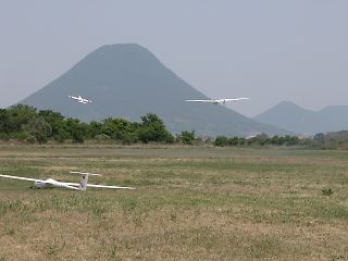 | 全国各地でスケールグライダーのトーイングが行われておりますが、ここ四国でも良いエリアに恵まれ、 スロープソアリング熱もかなりあり、スケールグライダーもなかり保有しているようで、このような条件下、 篠原さんの呼びかけで、香川県の土器川にある滑空場で開催されましたスケールミーティングに参加し てきました。愛媛からは柴・矢野・川田・玉井・高市、見学に3名、総勢8名です。 競技会ではなく飛行会(ミーティング)という事もあって、総勢22名(役員、曳航機専属の方除く) 申請した機体は40機を超えるエントリーです。また、当日し競技会でもないのにラジコン技術さん とRCエアワールドさんからも取材に来られておりました。(実はサーマル工房の取材) 私はASH26を持参して、最初に一回飛ばしただけで、あとは飛ばして楽しい(緊張する)曳航機 をずっと飛ばしておりました。 今日の土器川はグライダー日和で、サーマルもバンバン、競技会だと「今日は良く浮く」という条件 でしたが!し・か・し・・・、終日土手越えの横風。 この風の犠牲になった方、またこの風で飛行を断念された方も多かったのでは?と思いました。 離陸中に傾き、地面に翼端接触し、機体を壊された方も2・3人(DG505とVentus C)おりました。 また、着陸の距離感が狂い、ショートした方、飛行中に強度試験されて落ちた方、着陸でもんどり うった方、「着陸時に脚を出し忘れた方」(誰かな〜?)、など色々アクシデントもありました。 が、楽しい1日でした。 本日の印象的な言葉は「3mクラスのグライダーは大きいと思っていたのに、ここに来て感覚 が狂いました」と「RCエアワールドさん」のお言葉でした。 RCグライダーもアクロ機と同様、何故か段々デカくなる傾向ですが、これは良い事なのか? 確かに大型化すると異次元の飛びになる事はよくわかりますが、最終的には、それぞれのホーム グラウンド(フライトエリア)に合わせるのが一番ですね、そうでないと年1フライトの「宝の持ち腐れ」 になってしまいそうです。 7mクラスが1機、5mクラスが5〜6機、4mクラスが沢山、3mクラスもいっぱいでした。 フライト環境が広い笠岡組みの機体は益々巨大化の傾向にあります。ここはもう止まらないみたい・・。 ○1日曳航機を飛ばしてた私の反省点 後ろの方から「上昇が吊り上げ状態になってるぞ!もうちょっと実機らしく上品に引っ張ったら・・・」と言う 言葉も聞こえておりましたが、そうなんです、皆さんやはり見えなくなるくらいまで上げてもらおうとする (少々の高度ではグライダー側に離脱の意思が無い)気持ちがよく判ります。 それじゃ、一気に上げましょう!いわんばかりに上げてしまいました。 篠原さん、次回は離脱200mにしましょう! それとどなたか、飛行中(曳航中)の写真、撮って! |