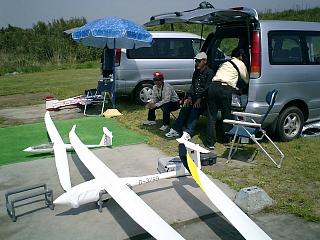 | 高知さんのピットです。 | 上村さんのディスカスです。 上村さんは普段からグライダーを精力的にやられていま すが、本日がトーイング初挑戦です。 |