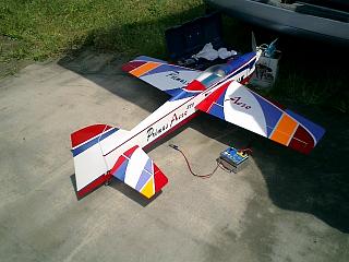真部さんのプライマスです。 アクロ機ですが、飛行パターンはアドバンスド級をやって おりました。 |