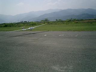 | 今日は高知から石川さん・上村さん・坂東さん、 今治から玉井さん、松山から矢野さん・龍成君、是沢さん と私が参加して今治RCクラブの飛行場でトーイングをや ってきました。 本日は初飛行機が2機ありましたが、ノントラブルで 無事サーマルも捉えて、快調に飛行いたしました。 |