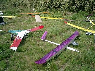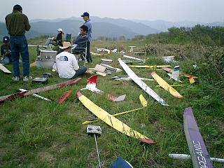 | ここはどうしても着陸場所の関係からスケール機より、 スロープ専用機等が多くなります。 様々な機体が並んでいます。 |