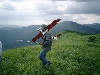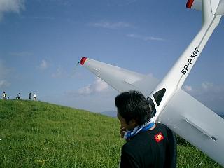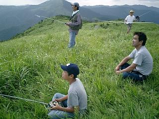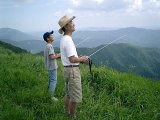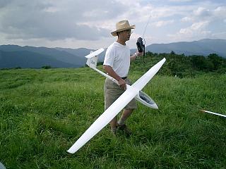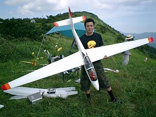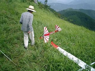 | 先週行く予定のスロープソアリングが、天候で中止となり、 また、日曜日であったことから週末が不完全燃焼でした。 と言う事で、今週 再度調整して出かけました。 (日曜は用事があるから・・土曜にしよう!) 連日30度を超える気温にウンザリして避暑兼ねて・・。 のつもりが、暑〜〜〜い!標高1200m以上はあるのに。 今日は風も弱く、2〜3m/s程度の爽やかな南風(正面)が 吹いていて、左右・正面にデッかいサーマルが発生し、斜 面上昇風とは違い獲得高度も高く、そこまで昇る時間も短 く、カッ飛びスロープソアリングには最適な条件でした。 |