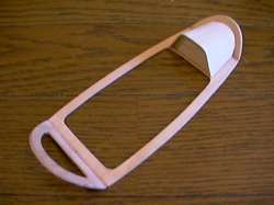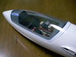 | 加工 ノーズの開口部にニッカド電池がのぞいているので隠す意味でメータパネル(ダッシュ)を作りました。 ノーズの切込み部分にニッカドが入ります。 |