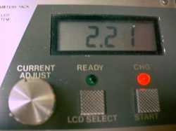 | Dカット中の電流 弦を0.3mmのピアノ線に変更しての電流です。約2.2A |