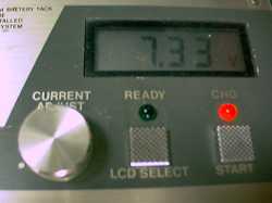 | Eカット中の電圧 同じく弦を0.3mmのピアノ線に変更しての電圧です。約7.3V |