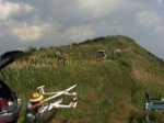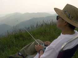 | 撮り方が下手ですが、5枚をつなげて見て下さい。 一番左が入口で、順番に左45度、正面(高知方面)右45度、右端です。 フライトエリアとしては2m機で左400m右300m前400mくらいでしょうか? 前は実際にはずっとリフトがありますので視力の許す限りフライト可能です。9月なのに暑かった! | ||||
