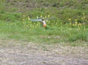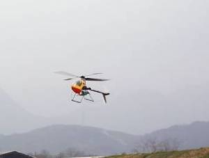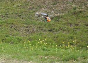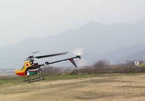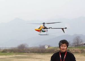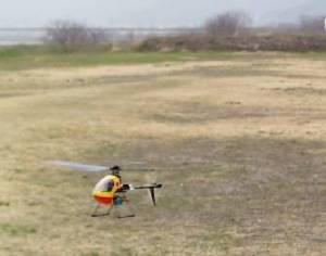 | 今日は風が2m/sほどあり、ホバリングの高度を一定に保つのが大変でしたが、パワーも余裕で、軽々と飛んでおります。 | ![]() |