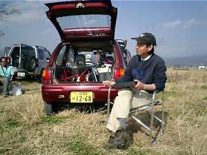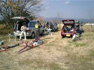 | 6時起床!7時10分出発、9時25分高知着。2時間15分の走行で、坂東氏宅へ到着。 早速、坂東氏の機体を積み込み、一路高知市東部の物部川へ。 |