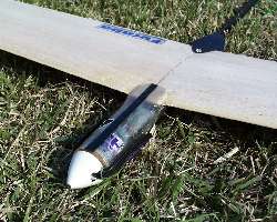 | 重心合わせはモータ以外全て搭載して最後にノーズを切りながらモータとペラで重心位置を探り決定いたしました。 | ![]() |
