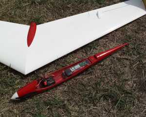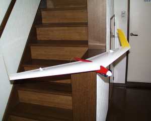 | 少々強めの後退角と大きめの翼端板が付いております。 この機体形状から察しますと、手投げは比較的楽そうです。 電動専用胴体が別にあるらしいのですが、S400はピュアのノースをカットする仕様となっております。 30mmφでカットするための治具が入っていますのでそれを胴体に差しケガキを入れてカットいたしました。 モーターマウント付けてペラ付けてみると、アレ〜ッ!ペラが翼に当たります。でも実際は翼が後退しているため起動方向には問題がありませんでした。重心合わせはニッカドを一番後ろに搭載してギリギリでした。 翼はシャーレのため強度はバッチリで、先週のSOLOのようにはならないと思っています。 |