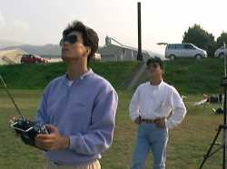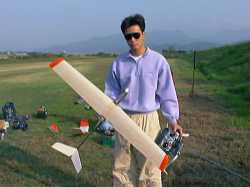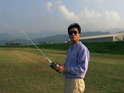 | @藤目さん F5B400の練習です。 普段飛ばしているところとサーマル 条件が全く違うとの事で「飛ばしやすい」 の連発です。 |