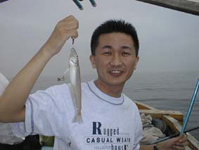 | さあ、勝負だ。 | すました笑顔だね。 | 釣りは真剣さが一番 |