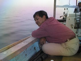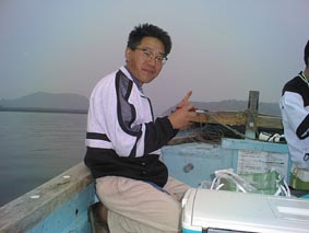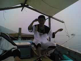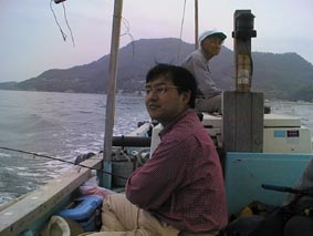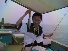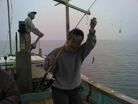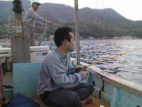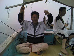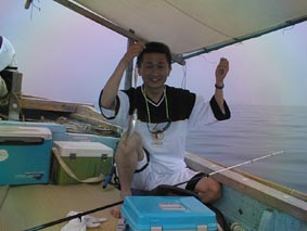 | こりゃ、でかいぞ。 | 2号艇、釣れてんのかな? | こら、写真を撮るな! |