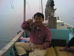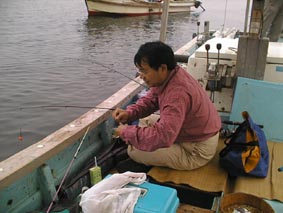 6時に出航かと思ったら、ゴカイ(エサ)が間にあわなくって6:10に出航となりました。