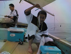 | 6:10 さあ、出航だ!! | 2号艇、みんな元気だぞ!! | さーーーて、仕掛の準備! |