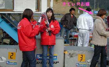 | レディース部門では、きてぃRお嬢も表彰されていました。 かなりの恥ずかしがり屋な様で、賞品貰ったら、そそくさと戻ってしまいました。 BOSSのシャッターも間に合わず。 |