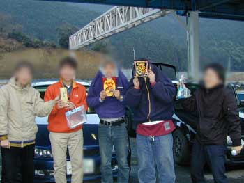 | 最後は、主催者のジャンケン大会とは別に、 ★走破人ご一行限定★ サイノス姐さん杯ジャンケン大会 も開かれました。商品をゲットしたイカレタ人達です。 ここでもBOSSは、ジャンケンに勝てません。何とかして下さい。 みこまるさんは、主催者大会で5000円も当てるし。いーなー。 食した感想が、掲示板に書かれますので、乞うご期待。それまで、商品の内容は、秘密にしておきましょう。 |