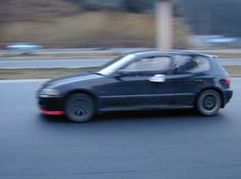 | こちらは、今日ここで知り合ったアコードユーロR使いのナックさんです。 見た目普通ですが、足周りは、金かかってます。 ドライだとここで50秒切れそうだとか? |