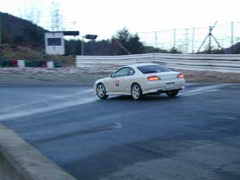 | S15シルビアのtetsuさんです。 サーキット初走行だそうです。 初走行&ウェット&FRの為、よく回ってました。 楽しめた事でしょう。 |