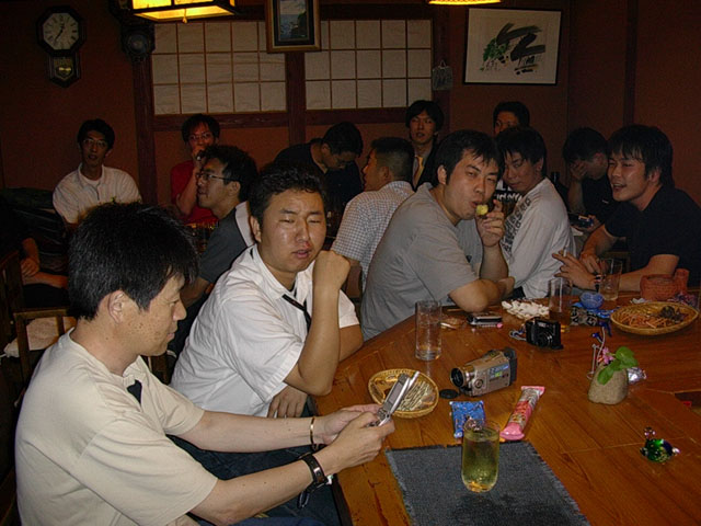 | その日の最後の方です。 。 。 。 。 な、なんてムサクルシイ場だ。 時間はこの時で既に0:30です。この後1時間は続いてましたね。 きてぃR。さん、穴さん、VICさんとBOSSは、その後更にきてぃ家で飲んでたりなんかして。。。 そんな訳で おめでとうございました! |