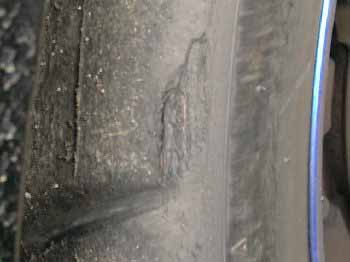 | 初めて履いたSタイヤ。 一日でワイヤーが見えてしまいました。 前のネオバの時もそうでした。 中古を買うのが悪いのか、走り方が悪いのかは、定かではありません。 |