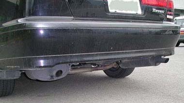 | 変身前★ノーマルマフラー★ 2本出しで結構カッコイイです。 外してみて分かりましたが、メダリオンと比べると、そんなに重くない。 |