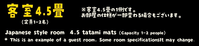 check in 15:00-21:30 check out 10:00 Closed : Sunday (may be open) parking : 10 cars Free wifi : available Bathroom: Men's bath, women's bath, shower room (all shared) 4 toilets (3 washlets) for men and women TV and air conditioner in each room. washing machine (100yen/one time) Dryer (100yen/2 hours) yukata、toothbrush、towel body soap、shampoo |