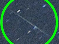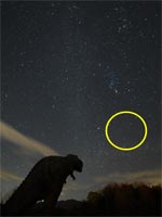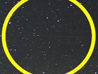 翌日、あきらめきれないので再度眼を皿にして凝視・・・。発見したのが上の2枚(-_-;)。左の写真は、シリウス(冬の大三角の右下)の左から右方向に横一直線。右の写真は、プロキオン(冬の大三角の左)の右上。願いはなんとか叶いました。(2017/10/23、TAKA)
